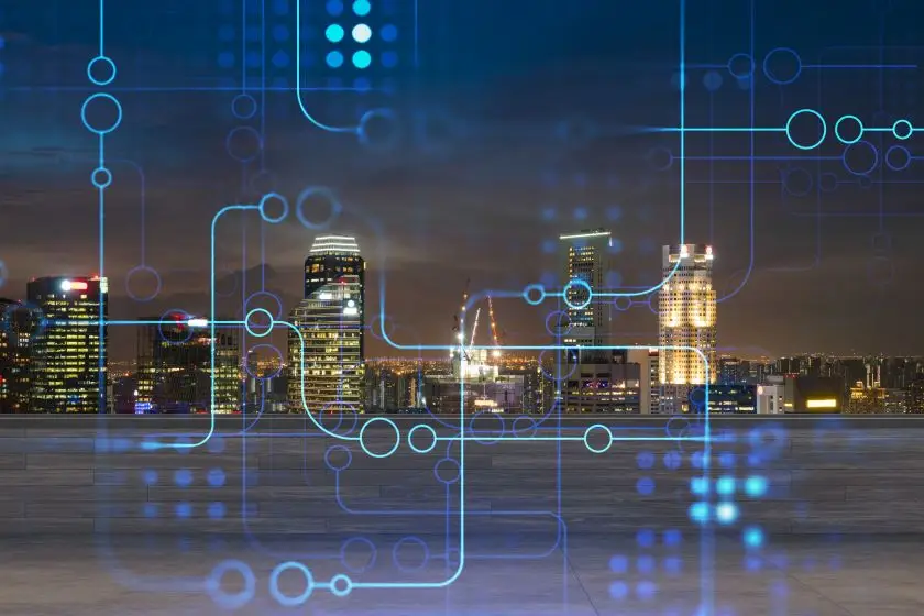 Environmental data is transmitted to the cloud through gateways, where platforms can analyze trends, display status indicators, and support decisions such as ventilation or HVAC adjustments throughout the day.