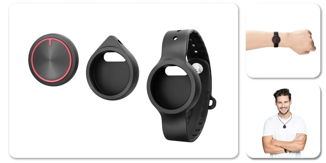 The B10 Emergency Button is designed for pregnant, elderly, or care-dependent people. It is equipped with the latest processor technology as well as Bluetooth LE 5.0 and can quickly transmit the wearer’s location and activity level to the caregiver in the event of an emergency call using indoor positioning technology and an accelerometer. With its sleek design and compact form factor, the device offers wearers a reliable and user-friendly tool for quick and efficient distress signaling.
