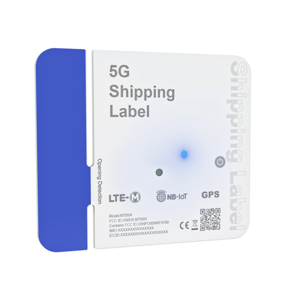 The MTB04 5G Shipping Label is a durable, disposable tracking label for outdoor tracking in smart global logistics, built on the advanced nRF9160 chipset and compatible with nRF9151 for satellite communication support. Powered by GPS and 5G-ready cellular (NB-IoT/LTE-M), it offers real-time location updates and condition monitoring—all in one device. With sensors for ambient light, movement, tilt, tampering, and optional temperature, it’s ideal for high-value or sensitive shipments. Intelligent network switching and lightweight protocols ensure reliable smart label tracking while reducing data costs and power consumption, enabling the label to last up to 360 days or more. Its ultra-thin design, IP67 protection, and eco-friendly materials make it easy to deploy on parcels, containers, or trucks. No special disposal is needed.